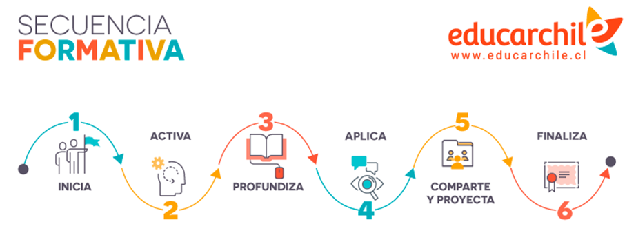 Para el desarrollo de los conocimientos, habilidades y actitudes que nos hemos planteado en relación al tema de este curso, te invitamos a realizar un viaje formativo, cuya trayectoria está orientada por la siguiente Secuencia Formativa, que nos irá guiando hacia el logro de los aprendizajes esperados mediante las orientaciones dispuestas en cada una de sus etapas.